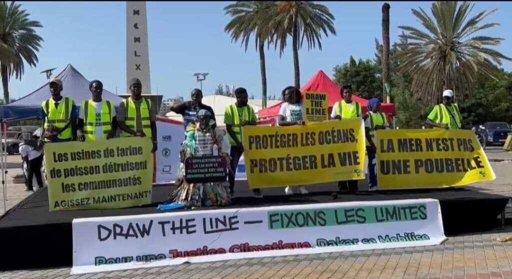 Les manifestants de Dakar ont pointé du doigt les usines de farine de poisson, responsables de la destruction des communautés locales et de la biodiversité marine. Avec des messages clairs tels que Protéger les océans, c’est protéger la vie ou encore, la mer n’est pas une poubelle, ils appellent à des actions immédiates pour stopper la pollution marine, respecter les écosystèmes et préserver les moyens de subsistance des populations côtières.